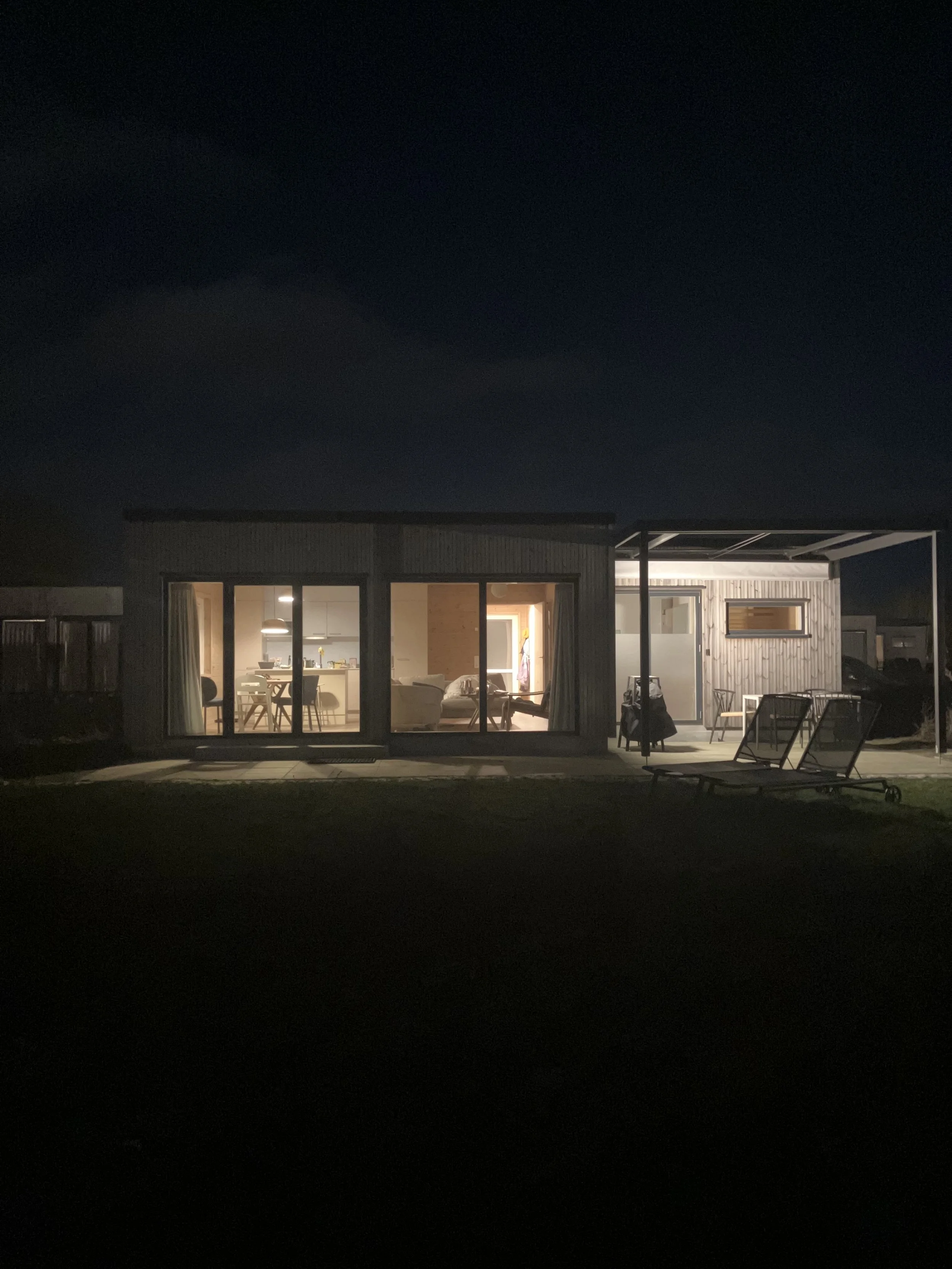 Sobald wir wieder in unserem Häuschen sind, machen wir es uns in der Sauna gemütlich und lassen die Arktis draußen. Durch das Fenster haben wir das Meer genau im Blick und können zusehen, wie jenseits der Scheibe die Wellen brechen, während wir im Warmen sitzen. Danach sind wir tiefenentspannt. Wir lachen über die dänische Werbung im Fernsehen und essen Lasagne zum Abendbrot. Hundemüde aber zufrieden fallen wir in unsere super hyggeligen Betten.